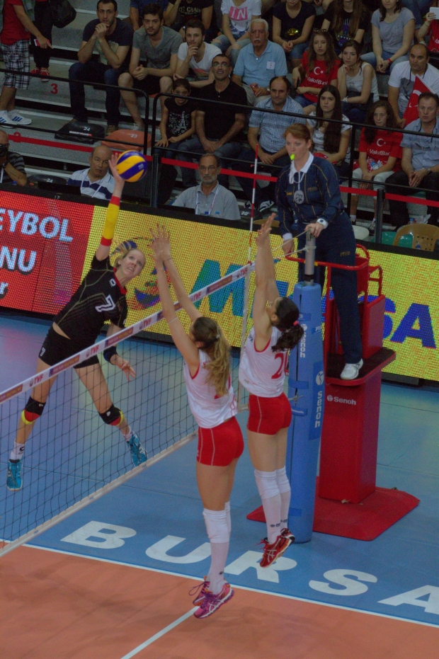 A Bayan Milli Takımımız ile Almanya’nın mücadele ettiği 2014 CEV (Avrupa Voleybol Konfederasyonu) Bayanlar Avrupa Ligi 1. Final Maçı, bugün (16 Temmuz) Bursa Cengiz Göllü Voleybol Salonu’nda oynandı.