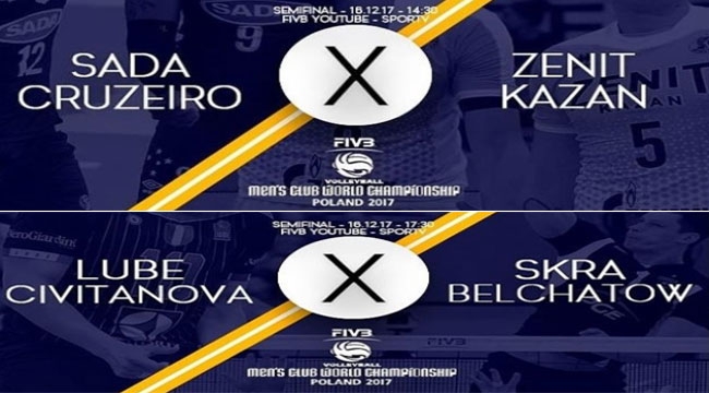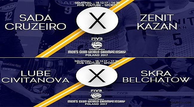 2017 Erkekler Dünya Kulüpler Şampiyonası 4’ lü final maçları bugün (16 Aralık) ve pazar günü Krakow’da Tauron Arena’ da oynanacak.Yarı finaller bugün Türkiye saati ile 16.30’ da Sada Cruzeiro ve Zenit Kazan arasında oynanacak mücadele ile başlayacak ve diğer taraf tarafta ise saat 19.30’ da İtalyan ekip Lube Civitanova ve Polonya ekibi Skra Belchatow’ un mücadelesi ile devam edecek.Sada Cruzeiro- Zenit kazan yarı finali, Şampiyona’nın son iki maçının bir rövanş maçı olacak. Brezilya Şampiyonu, Rusya Şampiyonu’nu 2015’ te (3-1) ve 2016’ da (3-0) iki kez yenmişti. Sada ve Zenit, iki takımdan birinin ev sahibi olmadığı bir salonda, başa-baş mücadele edecek.Lube Civitanova-PGE Skra Belchatow ise Şampiyona tarihinde ilk kez karşı karşıya gelecek. İtalya Şampiyonu, ilk kez bu yıl yarı finale çıkıyor. Skra ise 2009 ve 2010 yıllarında olmak üzere iki kez finalist oldu ve ayrıca 2012 yılında da bronz madalya kazandı.
