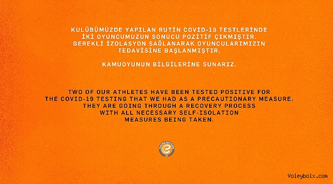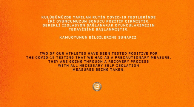 Eczacıbaşı VitrA, rutin testler sonucunda iki oyuncunun Covid-19 testinin pozitif çıktığını açıkladı.