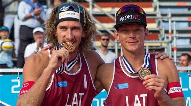 Erkeklerde ev sahibi ülkeden Samoilovs/Smedins çifti finalde Rus ikili Koshkarev/Bykonov'u 18-21, 21-10 ve 15-12'lik setlerle 2-1 mağlup ederek şampiyon oldu. Podyumun son basamağına ise Belçikalı çift Walle/Koekelkoren'i 22-20 ve 21-12 ile 2-0 geçen, yine ev sahibi ülke Letonya'dan Plavins/Regza ikiisi çıkmayı başardı.