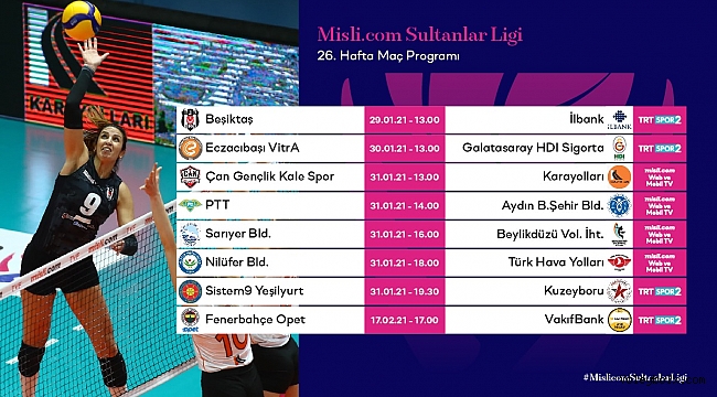 Misli.com Sultanlar Ligi’nde 26. hafta mücadeleleri, yarın oynanacak Beşiktaş – İlbank maçıyla başlayacak.Haftanın maç programı şu şekilde:
