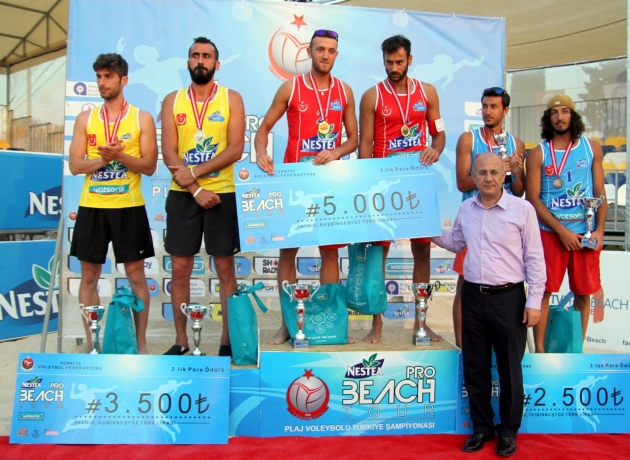 İkinci Caner Çiçekoğlu-Sakıp Karalı ikilisinin kupasını ve madalyalarını Türkiye Voleybol Federasyonu (TVF) Yönetim Kurulu Üyesi Ahmet Göksu verdi.