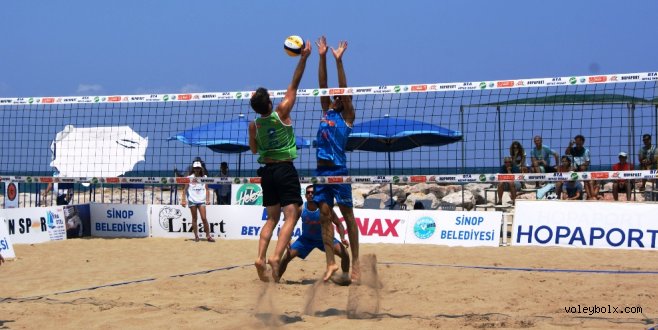 Sinop Kumkapı Plajı’na akın eden Sinoplular tarihi Sinop Kalesi’nin eteğinde Sinop’ta ilk kez düzenlenen Plaj Voleybolu Turnuvası’na şahitlik ettiler. Deniz, güneş ve tarih dokusu ile birbirinden çekişmeli maçların oynandığı turnuvanın ikinci günde 2-1 sonuçlanan tek maçı Selçuk- Hasan ikilisi ile Hakan – Caner ikilisi arasında oynandı ve maç boyunca seyirciler oldukça keyifli anlar seyrettiler. Toplam 8 Erkek, 9 Bayan takımın katıldığı tunuvaya Türk oyuncuların yanı sıra Gürcistan ve Estonya'dan bayan plaj voleybolcular da Sinop Etabı'nda şampiyonluk mücadelesi verdiler.