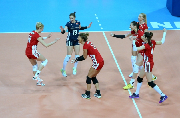 Filenin Sultanları maça Naz, Gözde Kırdar, Büşra, Neslihan, Neriman, Eda ve Gizem (L) ile başlarken Polonya karşılaşmaya Belcik, Weblinska, Pycia, Skowronska, Kaczorowska, Polanska ve Maj (L) ile başladı.