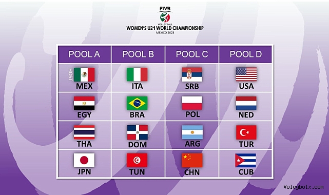 Meksika’nın ev sahipliğinde düzenlenecek FIVB U21 Kadınlar Dünya Şampiyonası’nda mücadele edecek 21 Yaş Altı Kadın Milli Takımımızın grup aşamasındaki rakipleri belli oldu.Millilerimiz, Meksika’nın Leon şehrinde gerçekleşen kura çekiminde D Grubu’nda yer aldı. Milliler, grup aşamasında ABD, Hollanda ve Küba ile mücadele edecek.16 takımın katılımıyla 17-26 Ağustos 2023 tarihlerinde düzenlenecek şampiyonaya Leon ve Aguascalientes şehirleri ev sahipliği yapacak.FIVB U21 Kızlar Dünya Şampiyonası’nda gruplar şu şekilde:A Grubu: Meksika, Mısır, Tayland, Japonya