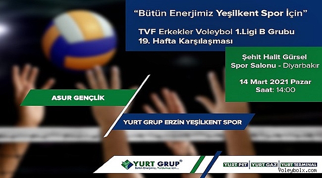 Tarih, saat: 14 Mart 2021 Pazar, 14.00TVF Erkekler Voleybol 1.Ligi B Grubu 19. haftasında Yurt Grup Erzin Yeşilkent, Diyarbakır deplasmanında Asur Gençlik'e konuk oluyor.Turuncu Beyazlı takım, Diyarbakır seyahati öncesi Erzin Belediye Başkanı Ökkeş Elmasoğlu'nun daveti ile gerçekleşen kahvaltı organizasyonunda Dörtyol At Çiftliğinde keyifli vakit geçirdi.