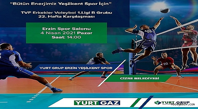 TVF Erkekler Voleybol 1.Ligi B Grubunda, play off yarı final mücadelesinde girilecek sıralama açısından büyük öneme sahip maçta Yurt Grup Erzin Yeşilkent Spor, lider Cizre Belediyespor’u konuk edecek.